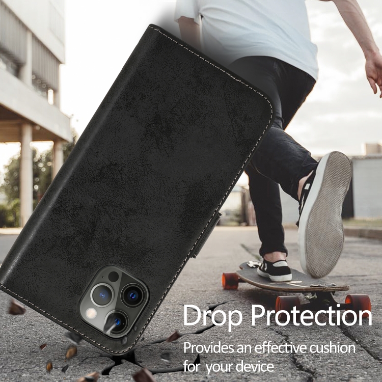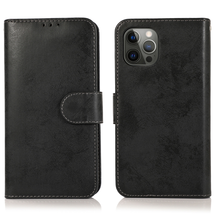 Funda para iPhone 13 Pro Retro 2 en 1 Cuero TPU + PU Tapa Horizontal Magnética Desmontable Soporte Ranuras Tarjetas Marco Fotos Billetera (Negro)