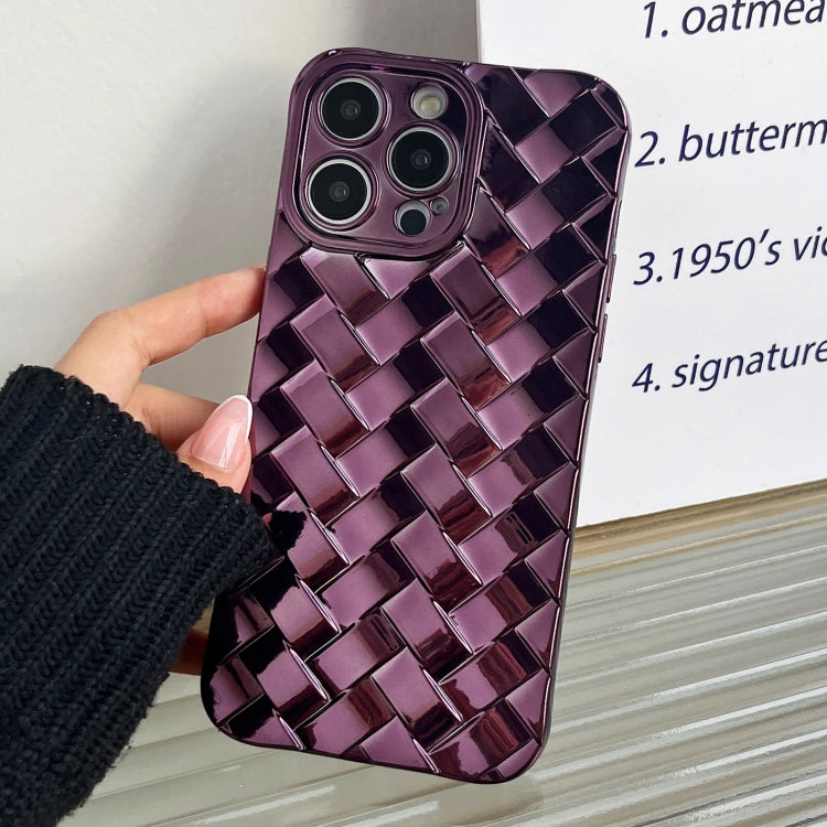 Caja del Teléfono para iPhone 13 Pro Retro Weave Textura Galvanoplastia (Púrpura)
