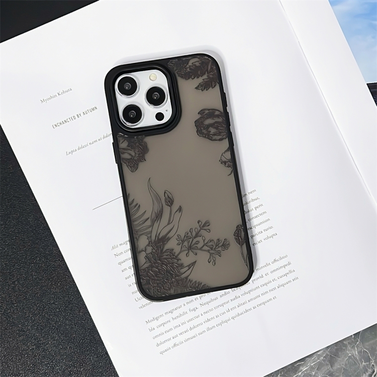 Funda para Teléfono iPhone 13 Skin Feel Matte TPU + PC a Prueba de Golpes (Flor Negra)