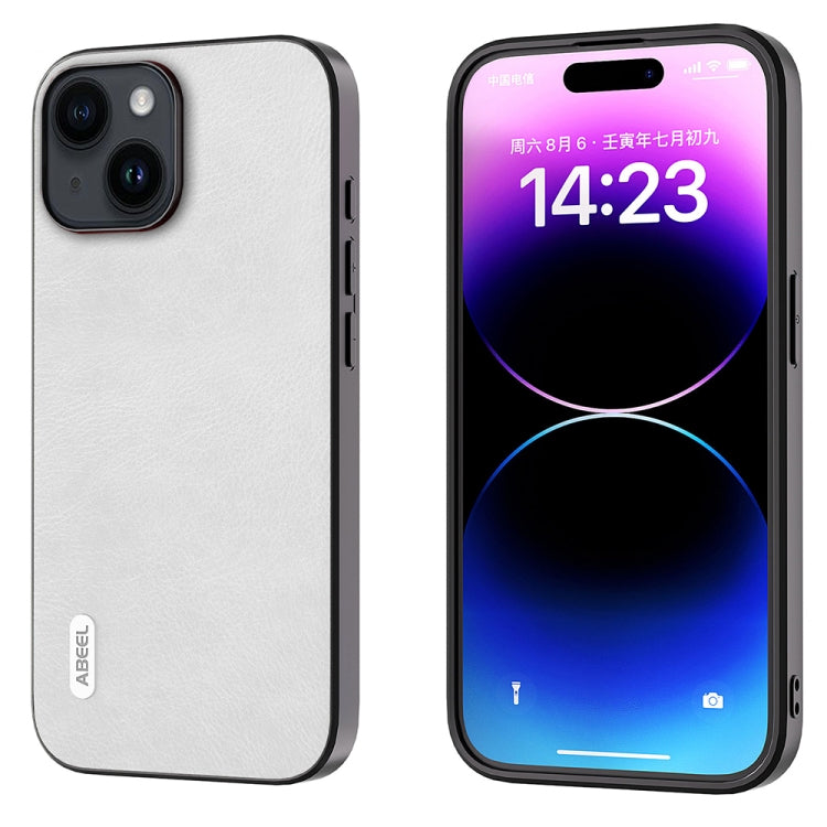 Funda para iPhone 14 Abeel Dual Color Lichi Texture PU Phone Case (Blanco)
