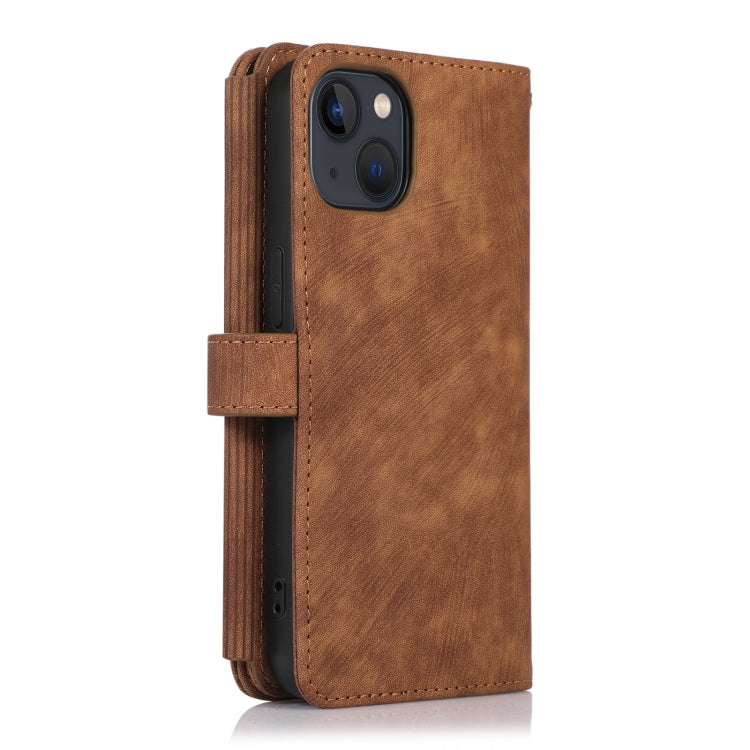 Funda para iPhone 14 Dream 9-Card Wallet Zipper Bag de Cuero para Teléfono (Marrón)
