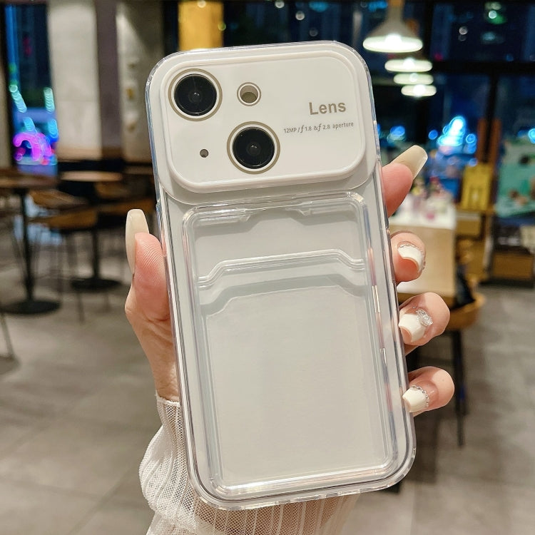Estuche híbrido para teléfono iPhone 14 TPU con ventana grande y ranura para tarjeta (Blanco)
