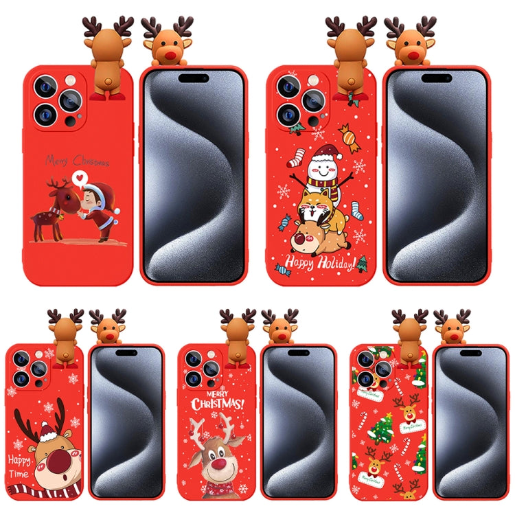 Funda de Teléfono TPU iPhone 14 con Muñeco en Relieve de Ciervo y Dibujo Coloreado (Árbol de Navidad y Ciervo)