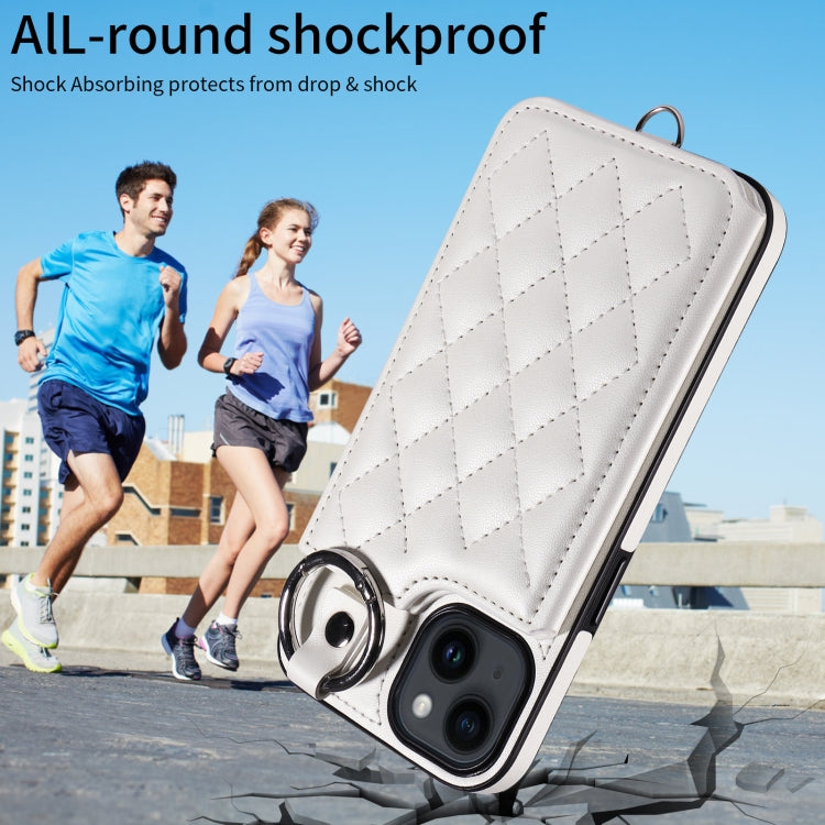 Funda para Teléfono iPhone 14 Bolsa para Tarjetas Textura Rómbica Cordón Corto (Blanco)