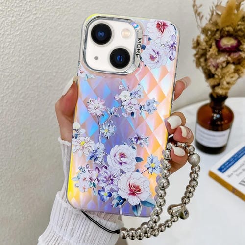 Funda para Teléfono iPhone 14 con Flor Láser Galvanizada y Correa para la Muñeca (Rose Ah15)