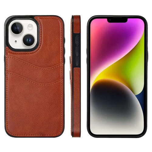 Funda para Teléfono iPhone 14 Piel de Cuero Litchi con Ranuras para Tarjetas (Marrón)
