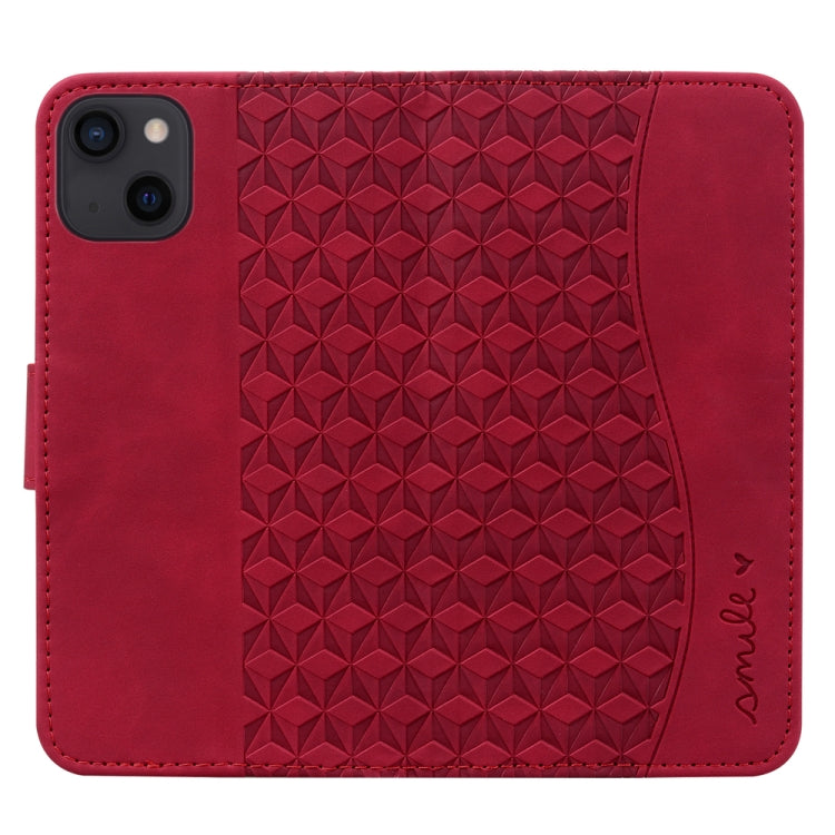 Funda para Teléfono iPhone 14 Cuero Hebilla de Diamante Empresarial y Cordón (Rojo Vino)