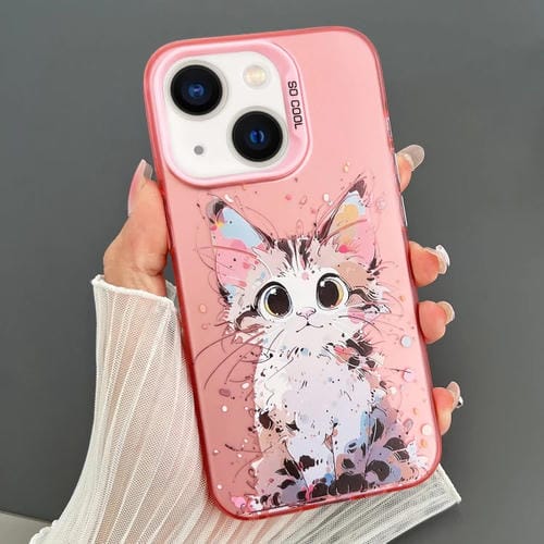 Funda para Teléfono iPhone 14 Imd Animal Graffiti TPU + PC Doble Cara (Gato Elegante)
