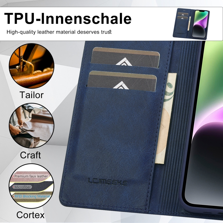 Funda para Teléfono iPhone 14 Lc.Imeeke Rfid Cuero Antirrobo (Azul)