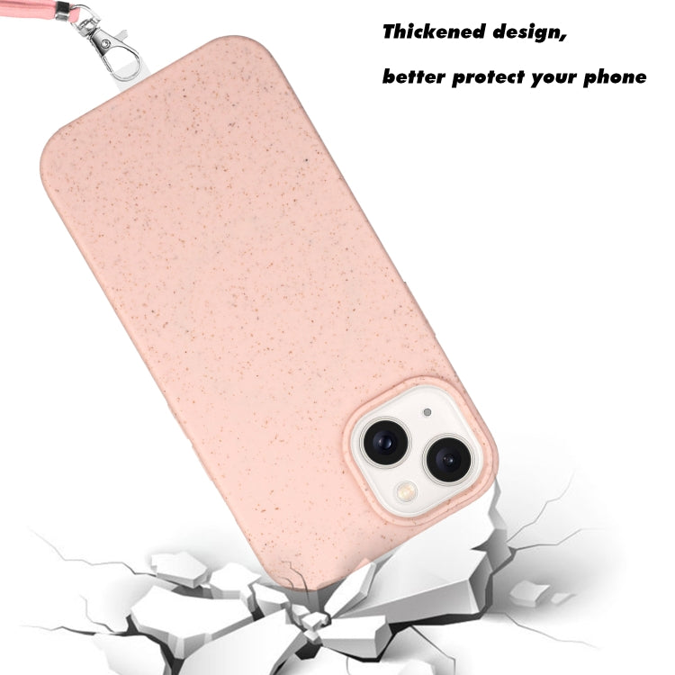 Funda para Teléfono iPhone 14 Material de Paja Magnético Magsafe de Trigo + TPU con Cordón (Rosa)