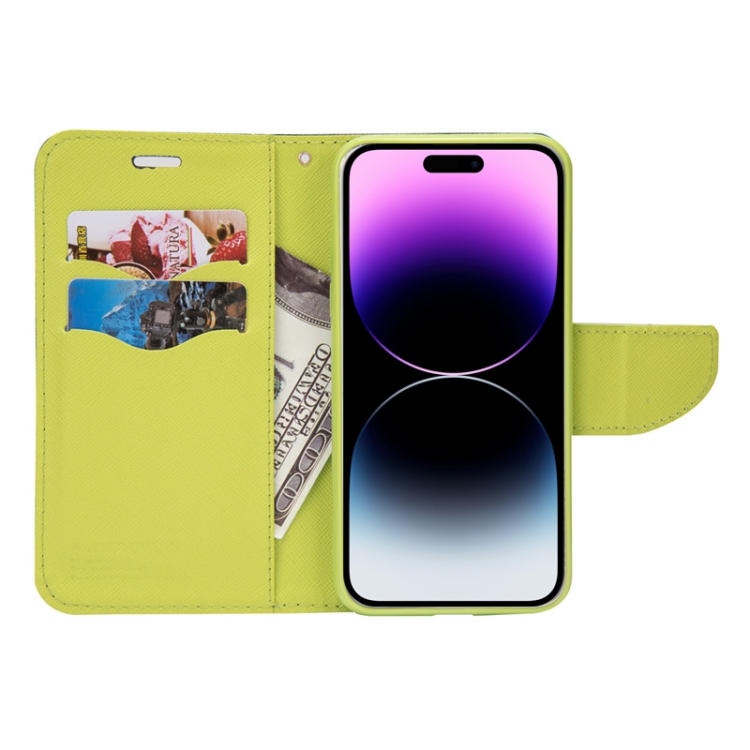 Funda para iPhone 14 Mercury Contrast Color Splicing Leather Phone Case (Azul Oscuro)