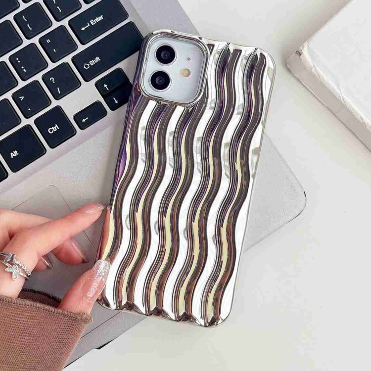 Funda para iPhone 14 Plating 3D Water Wave Texture Phone Case (Plata)