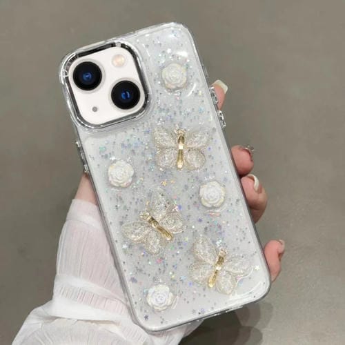 Funda para Teléfono iPhone 14 Plus Glitter 3D Butterfly TPU (Dorado)