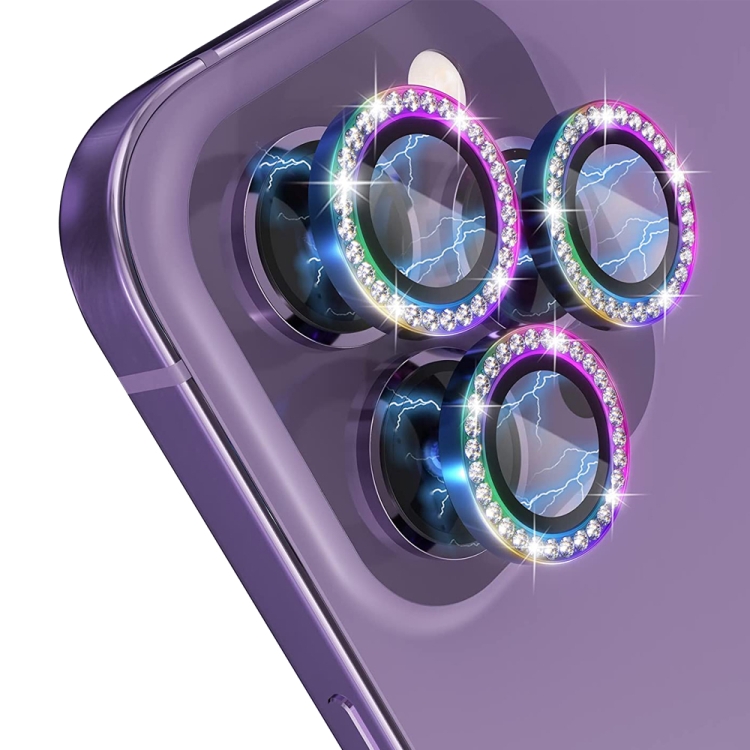 Película Lente cámara iPhone 14 Pro Northjo anillo diamantes imitación metal vidrio templado (Colorido)