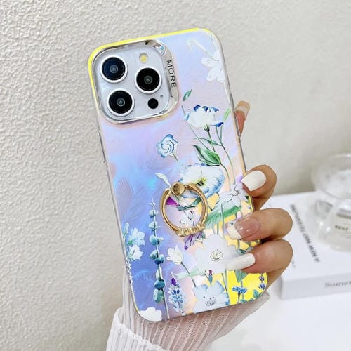 Funda de Teléfono TPU para iPhone 14 Pro Galvanoplastia Láser Anillo de Flor (Flor Azul)