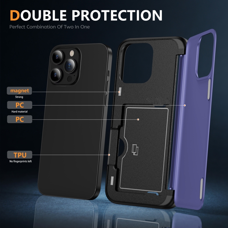 Funda para teléfono iPhone 14 Pro Max 3 en 1 con soporte abatible (Púrpura Claro)