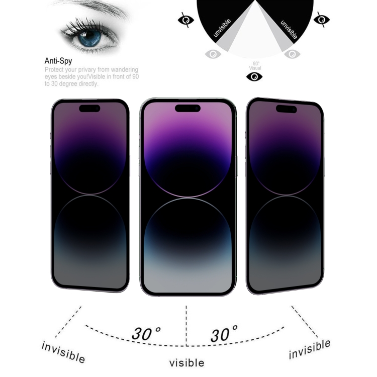 Película de Vidrio Templado iPhone 14 Pro Max Anti-Peeping Resistente al Desgaste (Aluminio)