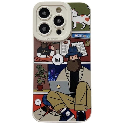 Estuche para Teléfono TPU iPhone 14 Pro Max Liquid Angel Eyes con Barba (Beige)