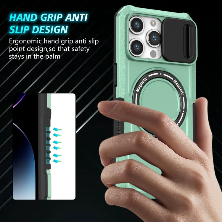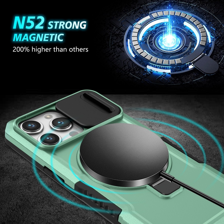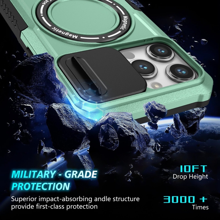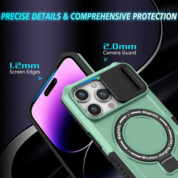 Funda para Teléfono iPhone 14 Pro Max Sliding Camshield Magsafe Holder TPU Hybrid PC (Azul Claro)