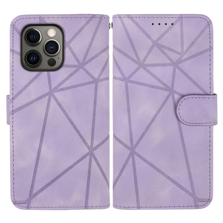 Funda para Teléfono iPhone 14 Pro Skin Feel Cuero Líneas Geométricas (Púrpura)