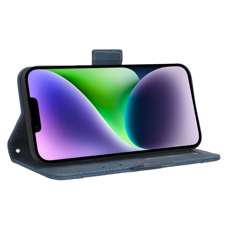 Funda para Teléfono iPhone 14 Skin Feel Becerro Textura Ranuras para Tarjetas (Azul)