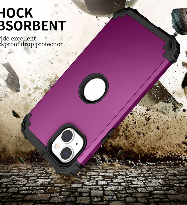 Funda híbrida para teléfono iPhone 15 3 en 1 a prueba de golpes silicona PC (Púrpura)