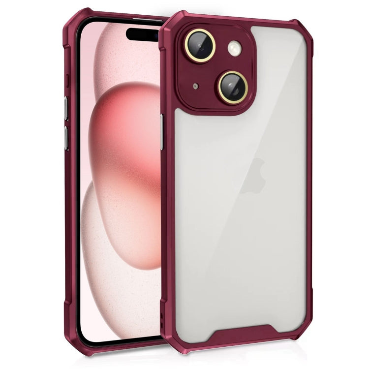 Estuche Acrílico para iPhone 15 a Prueba de Golpes con Película de Vidrio para Lentes (Rojo Vino)
