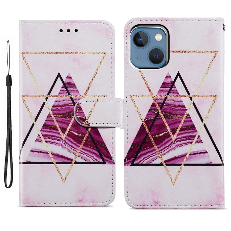 Estuche de teléfono iPhone 15 cuero dibujo coloreado mármol de tres colores