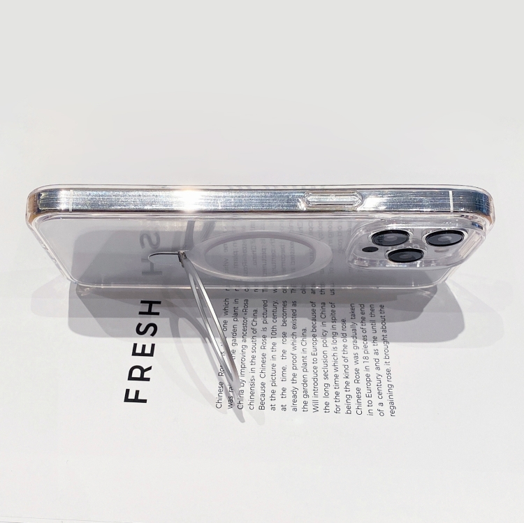 Estuche Magnético para Teléfono iPhone 15 Glitter Magsafe con Soporte (Blanco Transparente)