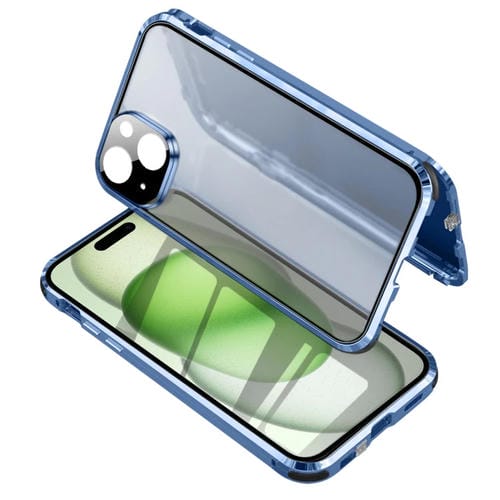 Funda de Teléfono para iPhone 15 Vidrio Templado Magnético Anti-Peeping (Azul)