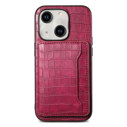 Funda para teléfono iPhone 15 diseño bolsa de tarjeta textura de cocodrilo (Rojo)