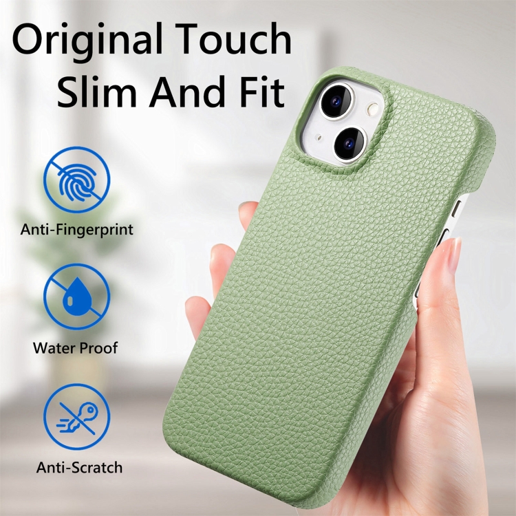 Funda para Teléfono iPhone 15 Parte Trasera Cuero Litchi Oil Edge (Verde Té)