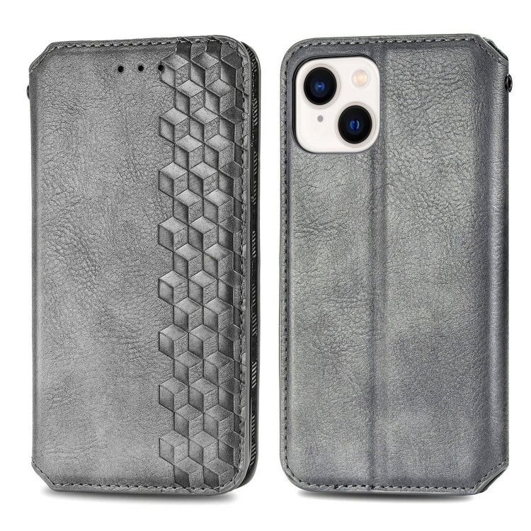 Funda para Teléfono iPhone 15 Cuero Magnético Prensado Rejilla Cúbica (Gris)