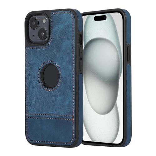 Funda para Teléfono iPhone 15 de PU con Recorte Hueco y Costura con Empalme (Azul)