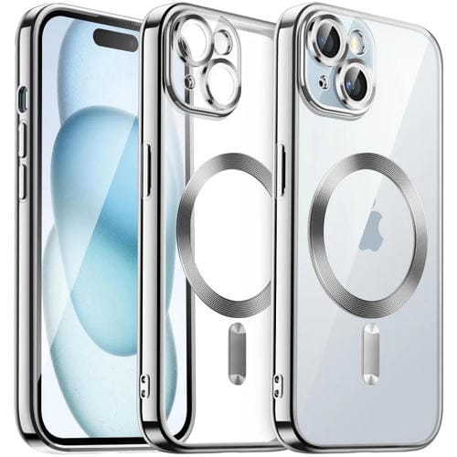 Funda para Teléfono TPU Galvanizada iPhone 15 Transparente Magnética (Plateada)