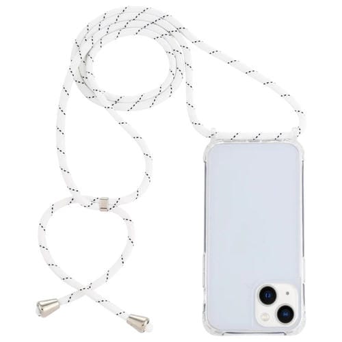 Funda Protectora Acrílico para iPhone 15 Airbag a Prueba de Golpes con Cordón (Blanco y Gris)