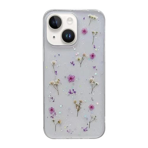 Funda protectora para iPhone 15 TPU Gypsophila Flowers Pattern (Púrpura)
