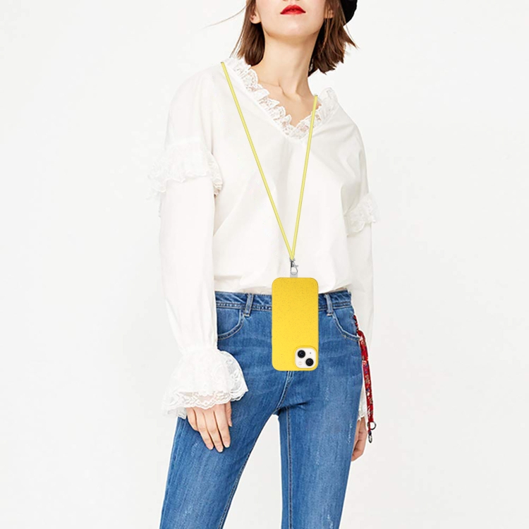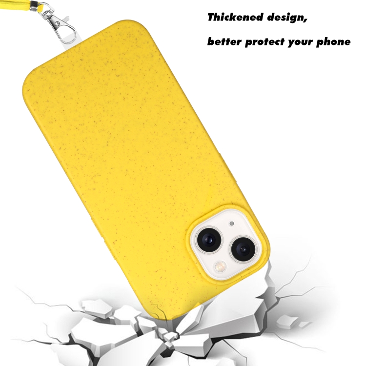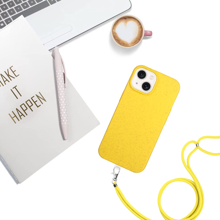 Funda para Teléfono iPhone 15 Material de Paja Magnético Magsafe de Trigo + TPU con Cordón (Amarillo)