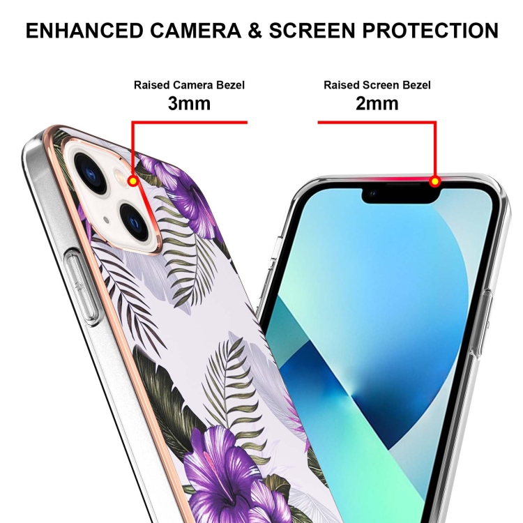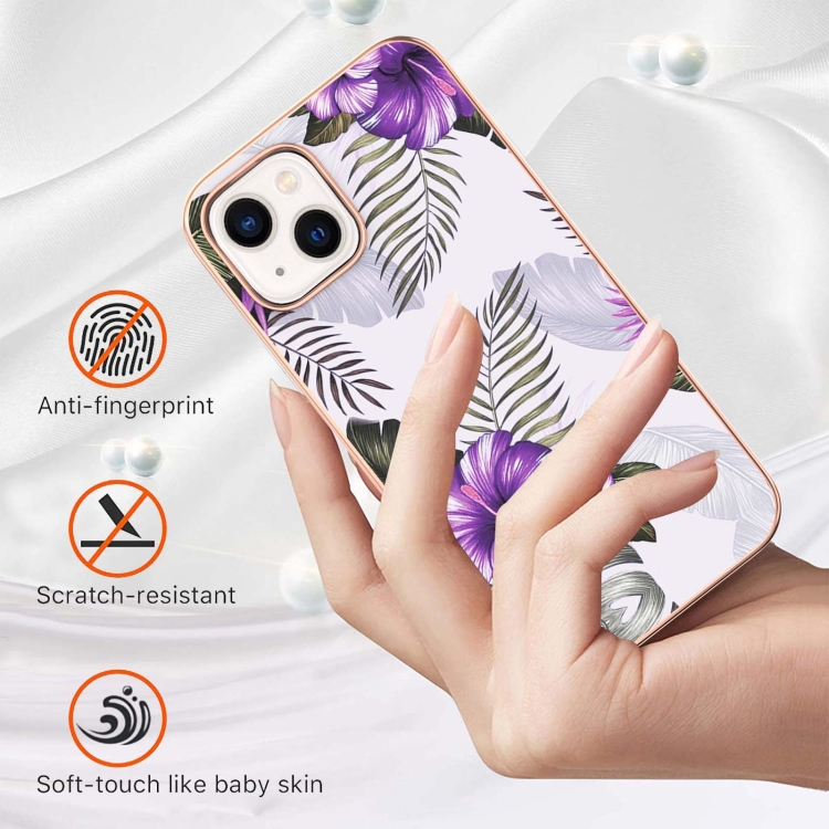 Funda para iPhone 15 TPU Patrón de Galvanoplastia Imd a Prueba de Golpes (Flor Púrpura)