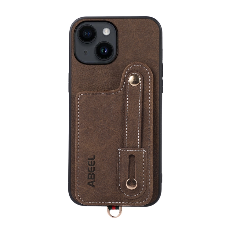 Funda para iPhone 15 Plus Abeel Litchi Texture Card Bag PU Phone Case (Caqui)