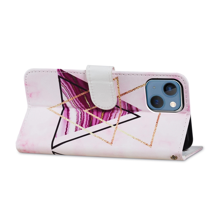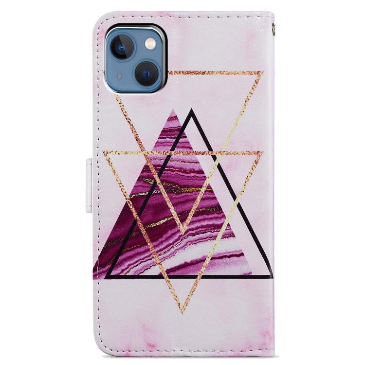Estuche para Teléfono iPhone 15 Plus Cuero con Dibujo Coloreado Mármol de Tres Colores