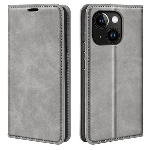 Estuche para Teléfono iPhone 15 Plus Cuero Succión Magnética Piel Retro (Gris)