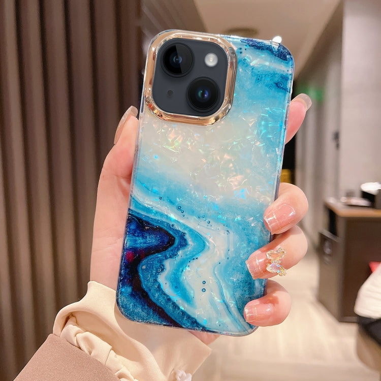 Estuche para teléfono TPU iPhone 15 Plus con ondulación de cristal colorido (Azul)