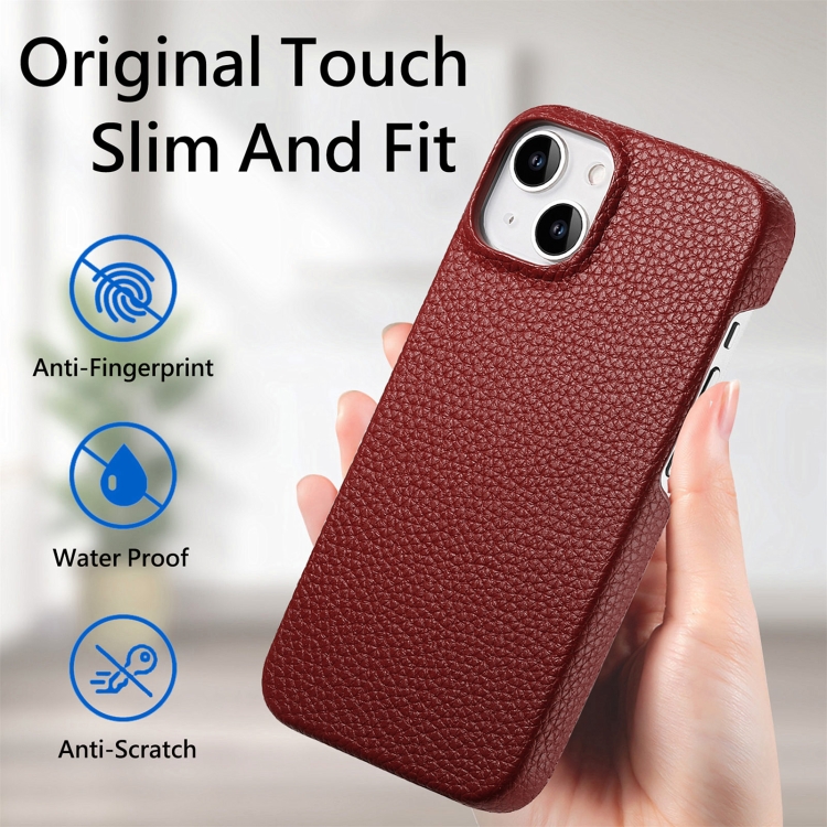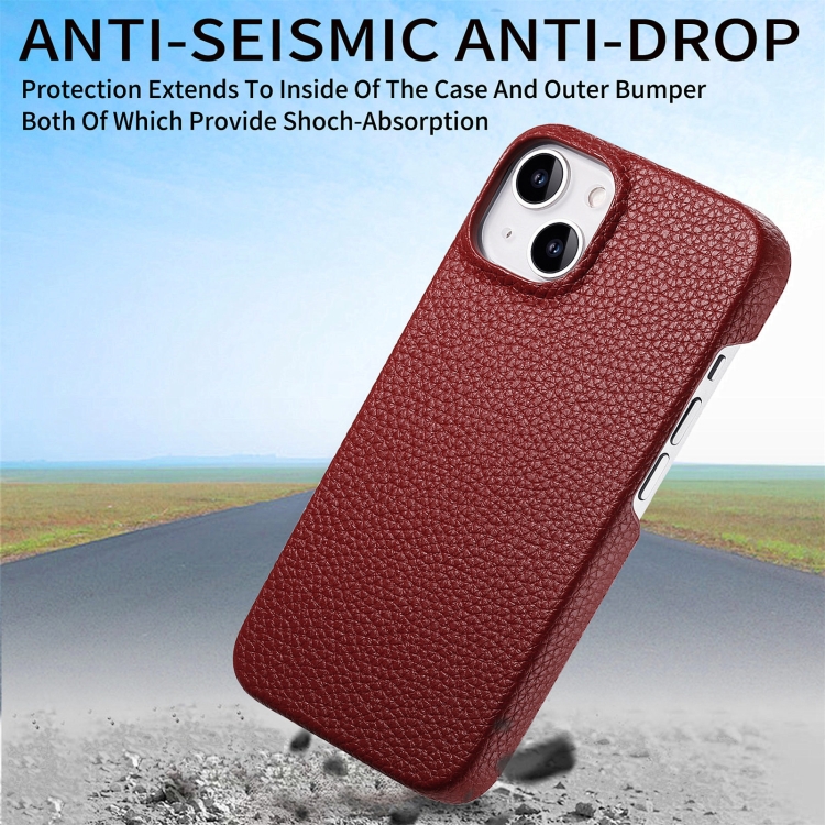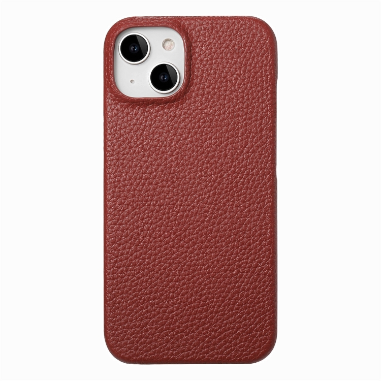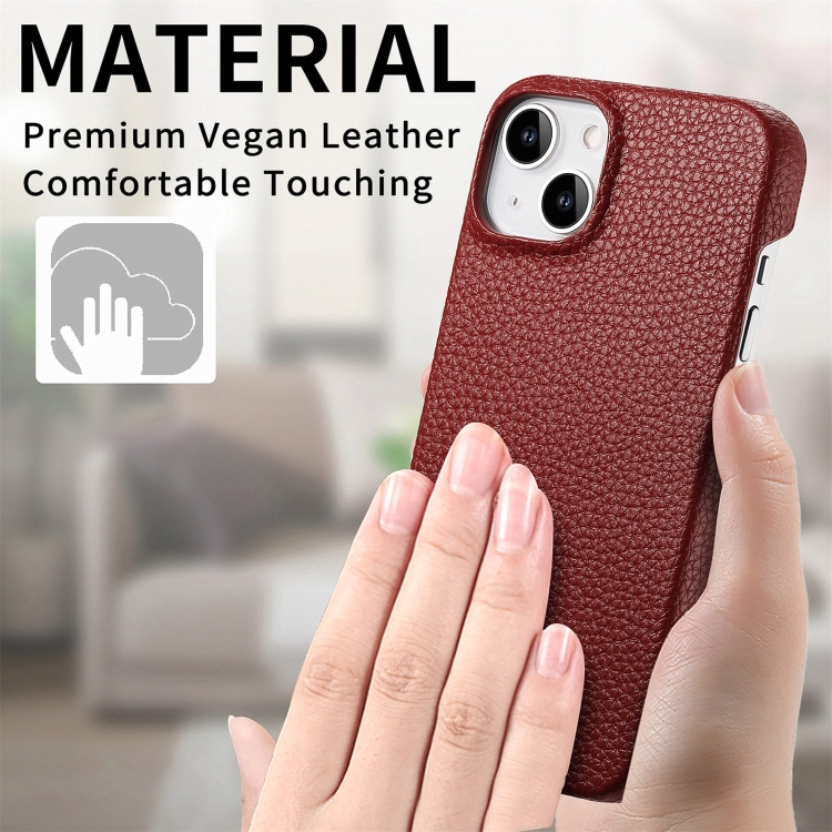 Funda para Teléfono iPhone 15 Plus Parte Trasera de Cuero Litchi Oil Edge (Rojo)