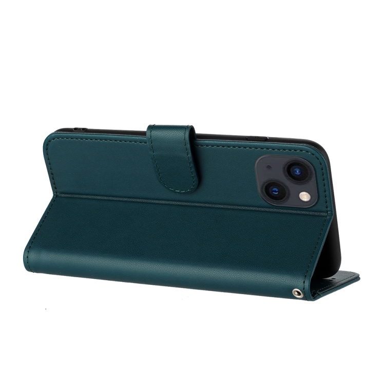 Funda para Teléfono iPhone 15 Plus Cuero con Tapa y Relieve de Flores Datura (Verde Oscuro)