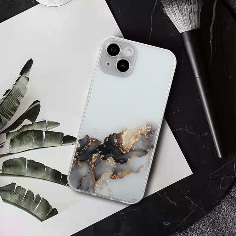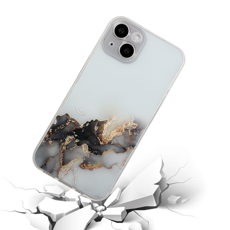 Estuche para Teléfono iPhone 15 Plus TPU Patrón de Mármol Hueco con Borde Recto (Negro)