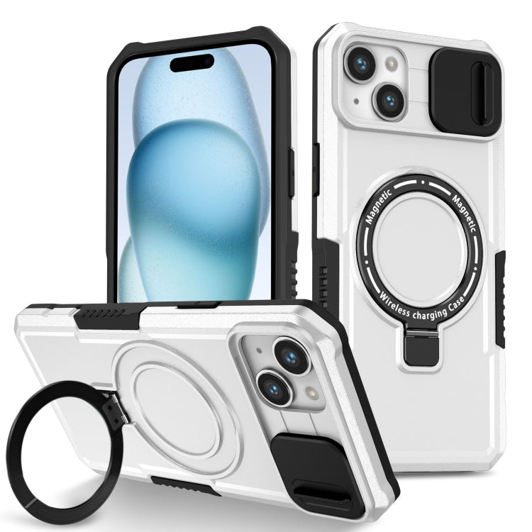 Funda para iPhone 15 Plus Sliding Camshield Magsafe Holder TPU Hybrid PC (Negro Blanco)