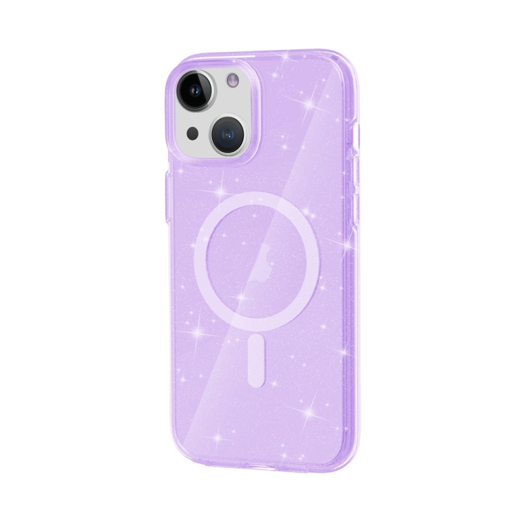 Funda para iPhone 15 Plus Terminator Style Glitter Powder Magsafe Magnética (Púrpura)