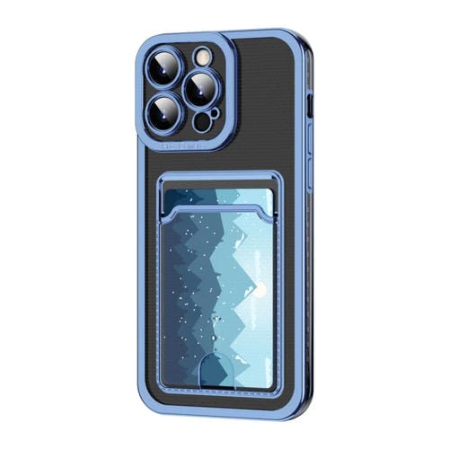 Estuche para Teléfono iPhone 15 Pro con Ranura para Tarjeta y Marco de Galvanoplastia (Azul)