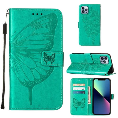 Estuche para Teléfono iPhone 15 Pro Cuero Mariposa En Relieve (Verde)